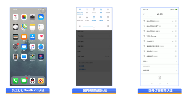 信锐SD-Branch方案通过三阶段实现智能化网络目标,通过多分支兼容利旧方案,信锐帮助企业实现了手机认证、PC认证的统一管理(图十),支持内部员工、外部访客、办公设备等不同身份的差异化认证策略,既保证了安全性,又提升了用户体验。