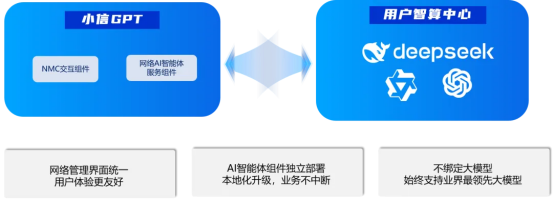 作为信锐重磅推出的 “网络AI数字专家”,小信GPT是基于A5i架构延伸的本地化网络AI智能体,通过“NMC交互组件与网络AI智能体服务组件分离”的核心设计,结合TCL用户智算中心(如DeepSeek模型),实现在网络巡检、故障定位、知识问答等三大运维场景、五十余子场景维度的自然语言交互式运维。